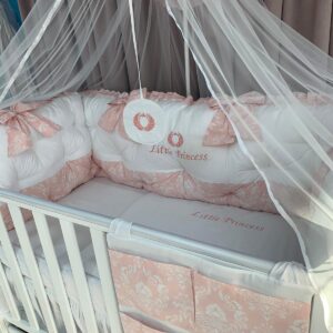 PEPPIbambini ROYAL Somon Little Princess Baby-Bettwaren, 11-teilig, Bettwäsche, 100% Baumwolle mit Stickerei + Moskitonetz
