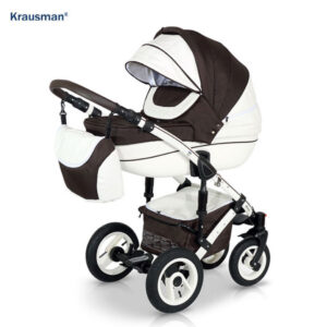 Krausman Kinderwagen 3 in 1 Sendo White Brown Kombikinderwagen Babyschale Babywanne Sportwagen Design Made In Germany