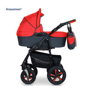 Krausman Kinderwagen 3 in 1 Clasic Red Kombikinderwagen Babyschale Babywanne Sportwagen Design Made In Germany