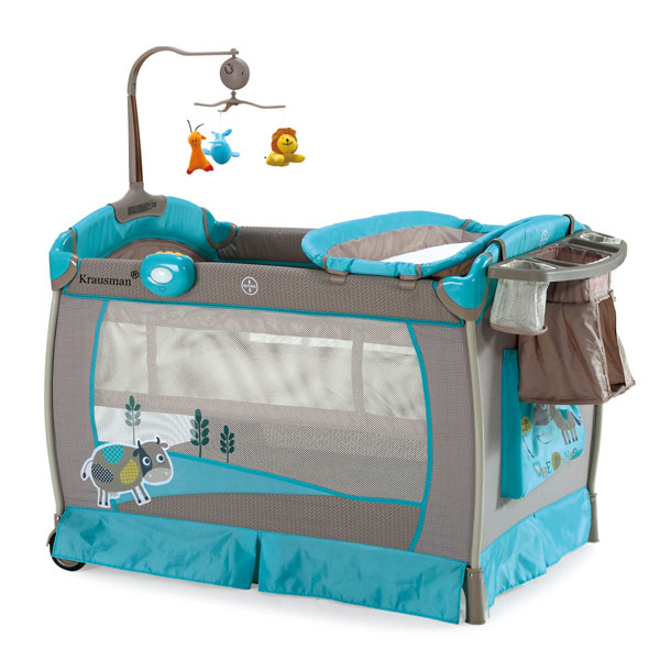 Krausman – Cot Spielen Yard Deluxe bietet Stil und Komfort Ihr Baby und die Mutter gibt ein leichteres Leben mit vielen Funktionen und Zubehör: Zwischenbodenmatte, Plüschtiere, Vibration, Licht Mahnwache, Lieder, Tisch infasat, Unterstützung für Zubehör, Räder mit Hinterradbremse, Transporttasche.