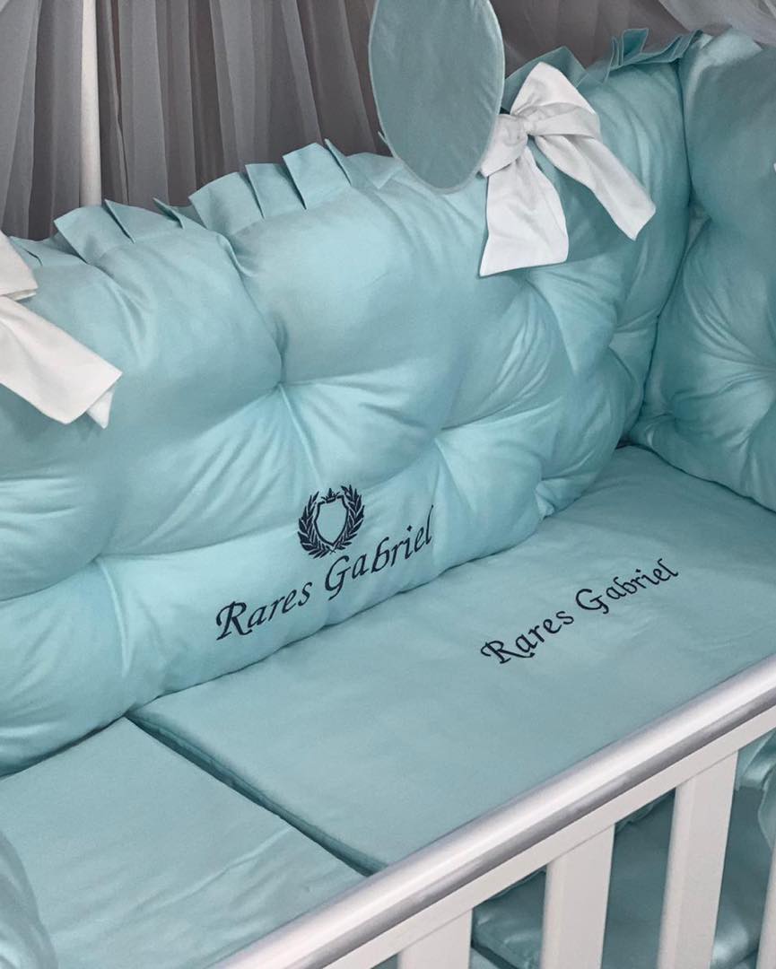 PEPPIbambini ROYAL Mint Rares Baby-Bettwaren, 11-teilig, Bettwäsche, 100% Baumwolle mit Stickerei + Moskitonetz