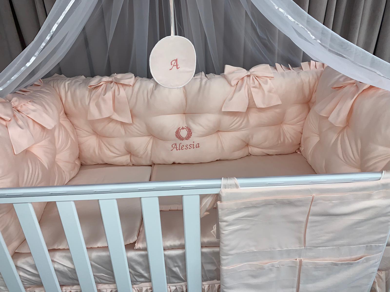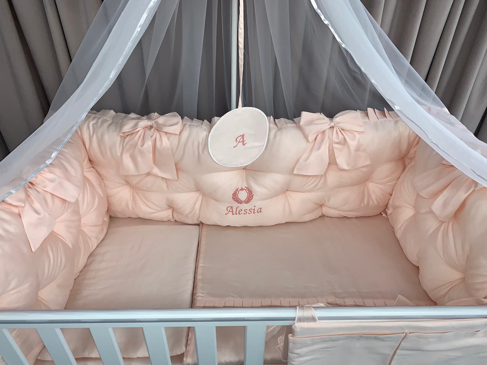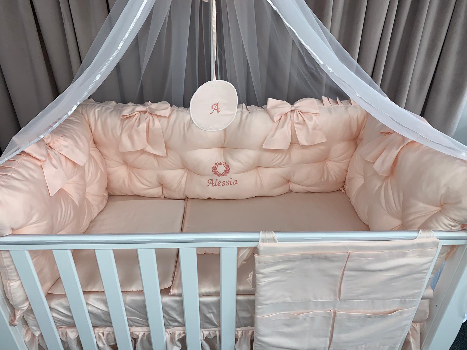 PEPPIbambini ROYAL Somon Alessia Baby-Bettwaren, 11-teilig, Bettwäsche, 100% Baumwolle mit Stickerei + Moskitonetz